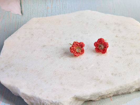 Micro-crochet Red Apple Blossoms Earrings