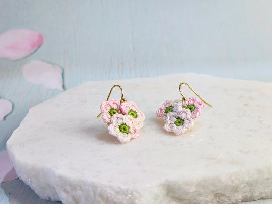 Trio of Micro-crochet Apple Blossoms Earrings