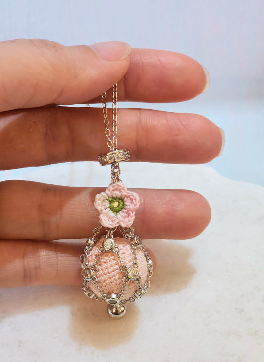 'Pearl' & Apple Blossom Micro-crochet Dreamcatcher Necklace - Unique Design that Sparkles